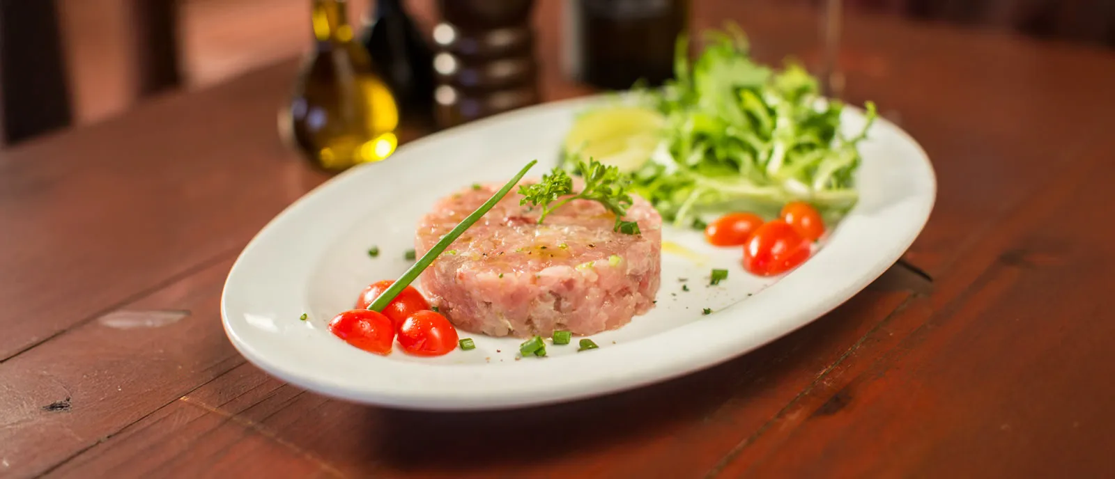 Prima di tutto si parte dal filetto di tonno, che deve essere fresco e abbattuto, taglialo a cubetti piccoli e regolari e condiscilo con olio extravergine, un pizzico di sale, erba cipollina tritata e un po’ di pepe bianco. Mescola il tutto e lascia insaporire.